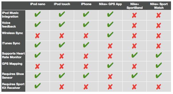 Ma andiamo per gradi, la collaborazione tra Apple e Nike+ nasce nel 2006, due aziende tra le più importanti e considerate nel mondo, iniziano a lavorare insieme. Nike+iPod Sport Kit questo il nome del loro primo prodotto di successo. Dove Apple si impegnava nel campo musicale e in quello hardware, ed invece Nike offriva le sue scarpe e il sito. Tutto ciò che gli permise di sbaragliare la concorrenza e rendere Nike+ un marchio vincente, non furono tanto le caratteristiche, visto che, alcune case offrivano di più, ma la semplicità d'utilizzo del prodotto. Dopo solo un anno, fu lo stesso Steve Jobs ad annunciale il milione di miglia compiuto dalla comunità di Nike+. Per portare il progetto ad un livello successivo, Apple si impegnò inserendo il supporto a Nike+ nell'iPhone 3G mentre Nike aggiungeva il supporto Nike+ a quante più scarpe gli fosse possibile. Ma i primi segni di cedimento giunsero l'anno seguente, quando Nike presentò il Nike+ SportBand, il quale eliminava la necessità di un iPod, collegandosi direttamente con il sensore Apple. Alla fine Nike ha avanzato diverse collaborazioni, quella precedentemente citata con la MotionX, un'altra con la Polar, ed un'altra con TomTom, permettendo all'utente di avere sempre più disponibilità di caratteristiche, ma perdendo completamente la semplicità che aveva reso il servizio tanto noto. Creando oltremodo confusione, e mettendo in difficoltà l'utente riguardo tutte queste possibili combinazioni, ecco infatti un quadro che mostra la situazione:
