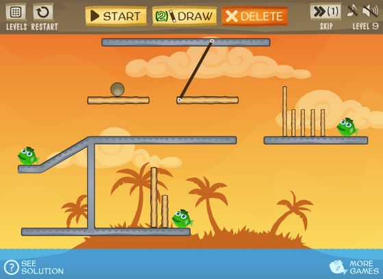 In Fish Need Water il compito è quello di buttare i pesci nell'acqua attraverso la logica. Dovrete disegnare degli assi di supporto che consentano a dei pesi cadendo di muovere gli oggetti presenti nei livelli fino a far cadere tutti i pesci presenti nello scenario nell'acqua.
