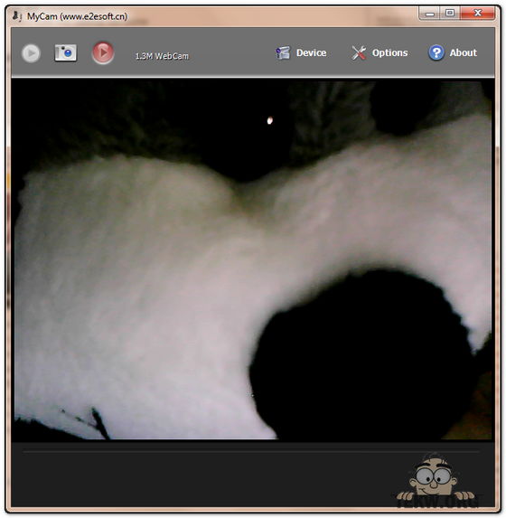 2. Tramite il software Mycam, funzionante con tutte le webcam e che non richiede installazione. Il programma oltre a catturare foto in Jpeg e Bmp consente anche di registrare video in MJPEG/MP3 AVI. Non offre altre funzionalità se non il cambio di risoluzione, quindi da considerarsi un software base.